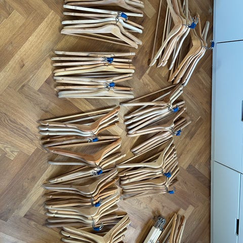 8 træbøjler (tænkt) til nederdele i pæn stand.