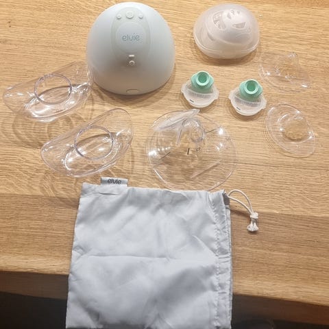 Aldrig brugt, endte med at amme fuldt hele vejen igennem. Dobbelt håndfri brystpumpe fra Elvie. Alle originale dele er der, helt ubrugte. Original kvittering fra BabySam haves. Kassen åbnet af hensyn til pladsopbevaring men aldrig brugt en eneste del. Nypris 4999, købt på tilbud til 3999 d. 28/11 2022, så pumpen er snart 2,5 år gammel.