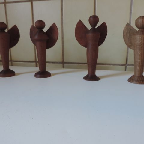 Engel, hånddrejet i mahogni eller andet hårdttræ.