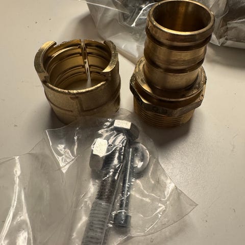 Klemringskobling fra Danfoss som anvendes til at tilslutte PEX rør til forskellige udgaver af deres ventiler. Sættet består af en støttebøsning, klemring og omløber medvendigt gevind