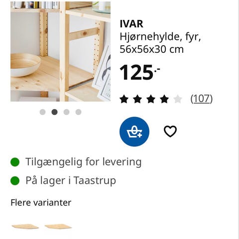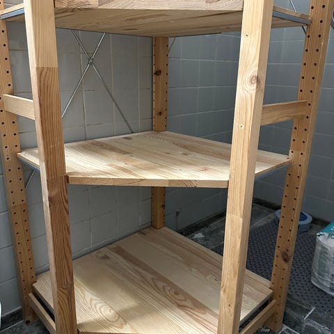 Hjørnehylder til 30 cm dyb reol. Haves 15 stk. Nypris 125kr pr stk.