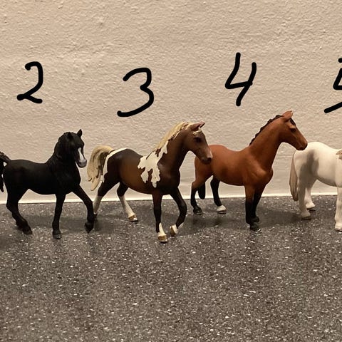Fire gode heste - den ene med gult mærke på ryggen. Samlet pris.