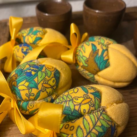 To flotte patchwork påskeæg. 8 cm lange.