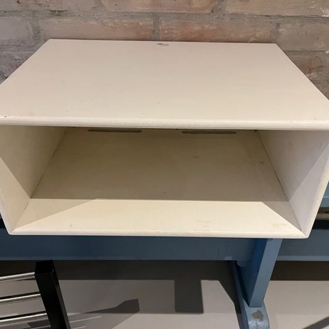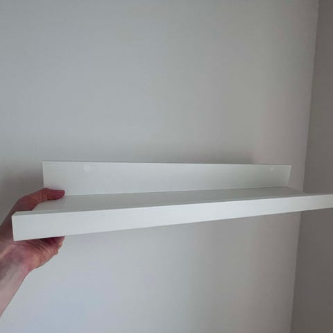 Fin hvid svæve hylde i oval format til at hænge på væg.