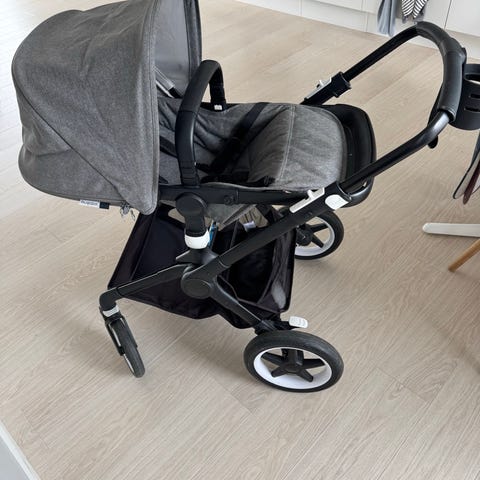 Bugaboo fox 2. Dog er stellet fox 3, da det engang gik i stykker. Sort.