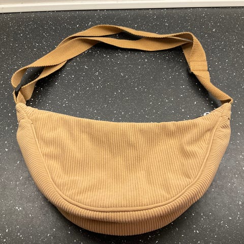 Taske i stof, satin med frynser. Foto 2 er gjort lysere så den bedre kan ses. Indvendig er der ud over det største rum, en lynlåslomme. Bredde: 20 cm. Højde: 20 cm. Så fin som en ny. Ann. nr. T234