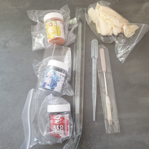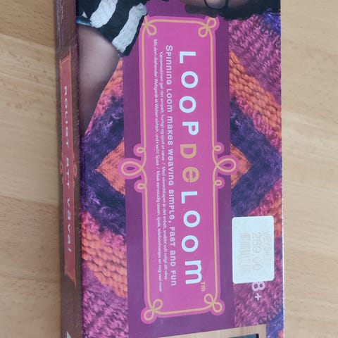 Lille væv med garn. Væven er kun brugt med det garn som ses på væven. Garn og kasser følger med.