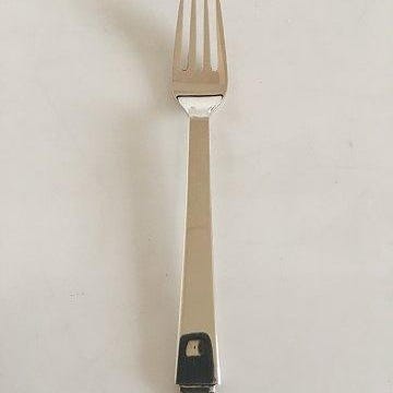 1 Pyramide kagegaffel. Design af Harald Nielsen. Stemplet Georg Jensen, Sterling og Denmark. 'Georg Jensen' stemplet er det som blev brugt efter 1945. Lille monogram på bagsiden, ellers i god stand, med let patina. 500 kr