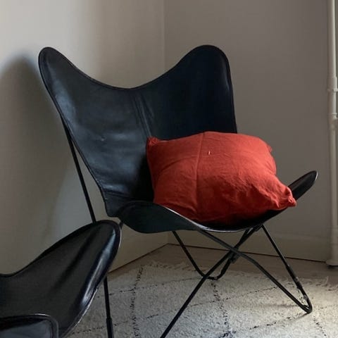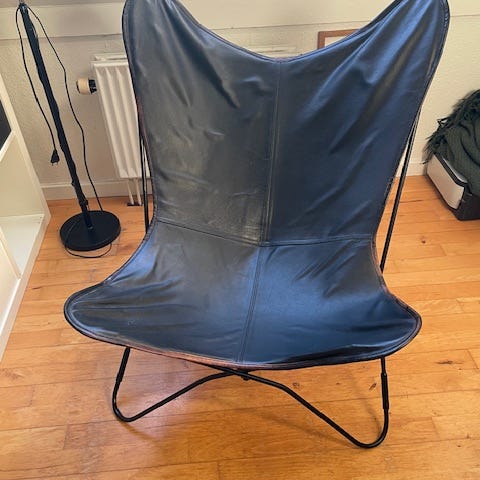 Læderbetræk i cognac farve til flagermus lænestol sælges til 1200kr