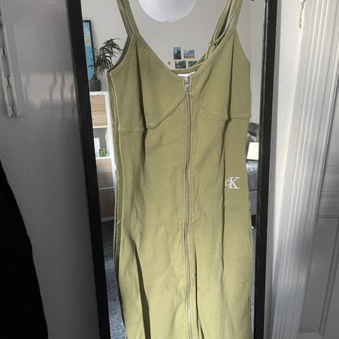 Army / Khaki grøn elegant kjole fra Calvin Klein i str 8 (svarer til S/M ala 36-38 - se mål)