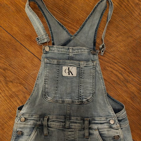 CK ‘guld’ logo huller ved bånd øverst, snyde lomme klapper og sløjfe binde bælte bånd