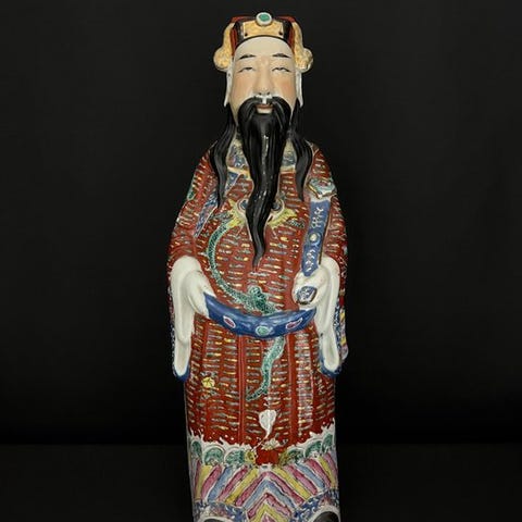 Kina, antik porcelæns, siddende figur, køkken guden Zao jun, i flerfarvet hånddekoreret porcelæn fra Qing Dynastiets kejser periode 1644-1911: