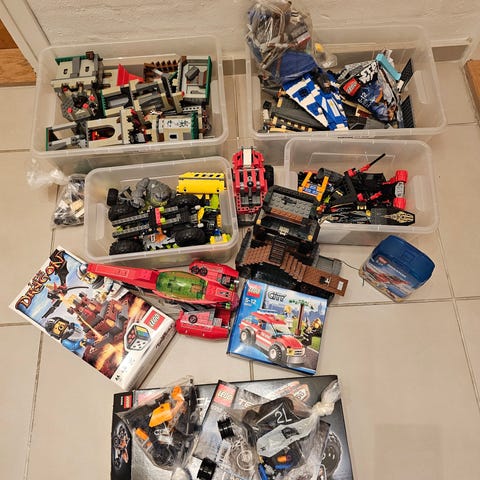 Mere end 20 forskellige Lego modeller sælges samlet med stor besparelse. Der er alt fra Creator, politi, brandbiler og rum Lego. Pris hver for sig 2000,-
