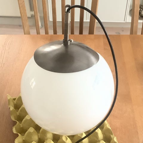 Rund lampe i messing og glas