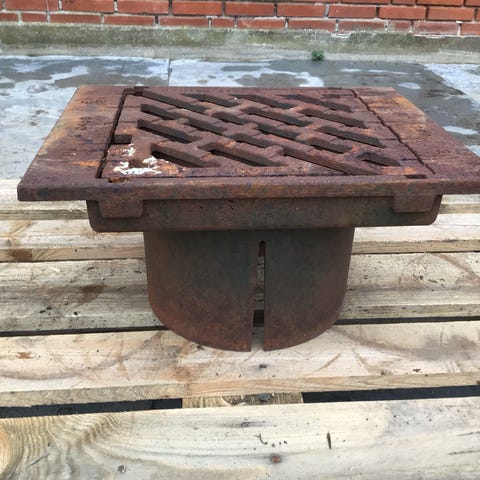 Københavner rist / brønddæksel med krave. Firkantet i jern. Kan tåle tung belastning (lastbil).