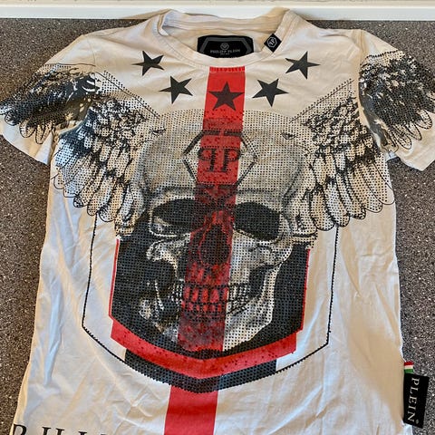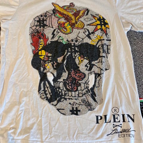Har de velkendte Philipp plein tegn ned af begge ærmer og ved brystet