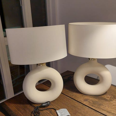 Råhvid rustik bordlampe. Skærmen skal skiftes. Har to af dem. To sælges samlet for 300 kr