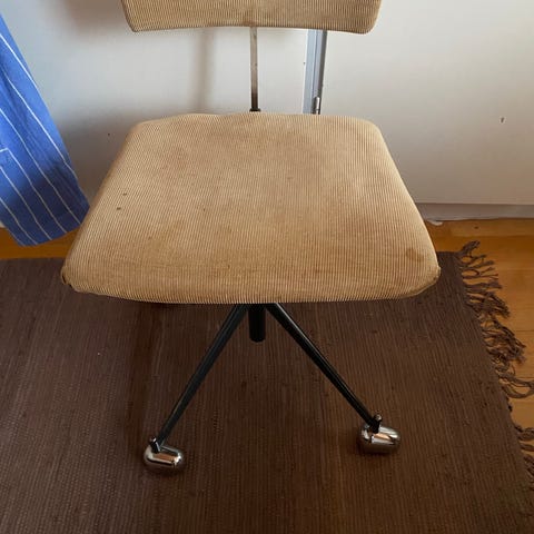 Super som kombi med andre stole om fx. Spisebordet. Står fast på gulvet, men kan dreje og indstilles i højden. Cool som indretning og til brug.