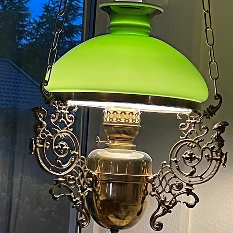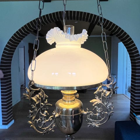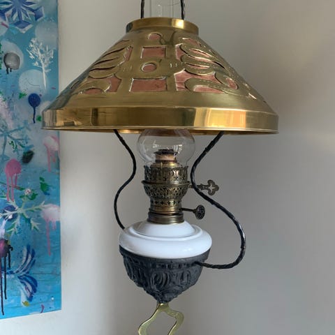 Flot maritim olielampe, som er lavet om til brug med elektrisk pære.