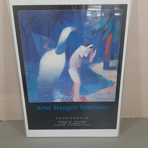 Signeret plakat af William Hansen i ramme med glas. Måler ca 54,5 * 56,5. Kan hentes i Hellerup eller Båring på Fyn.