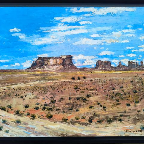 Olie maleri i meget god stand med enkelte afskrabninger på ramme. Måler 71x52 cm