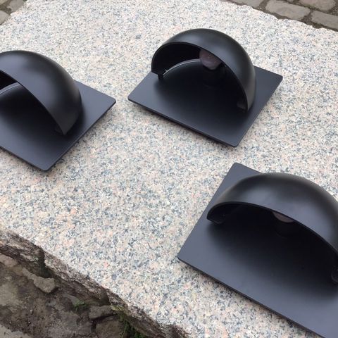 Skærme: Optrukket aliminium. Afskærmning: Klart glas. Top: Optrukket aluminium. Bagdåse: Optrukket aliminum. Montering skal udføres af autoriseret elektriker. Tæthedsklasse IP44. Isolationsklasse I.