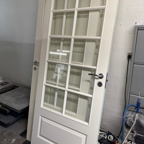 Man kan evt lakere døren med mat lak, så malingen ikke så let skaller af. Så bliver resultatet som sidste billede.