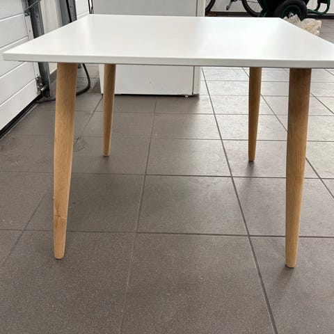 Målene dybde og bredde er på rammen. Bordben stikker længere ud da de er skråstillet.