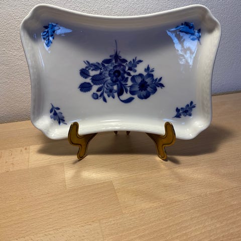Blå blomst fad højde 4 cm, diameter 22 cm. To hak i kanten.