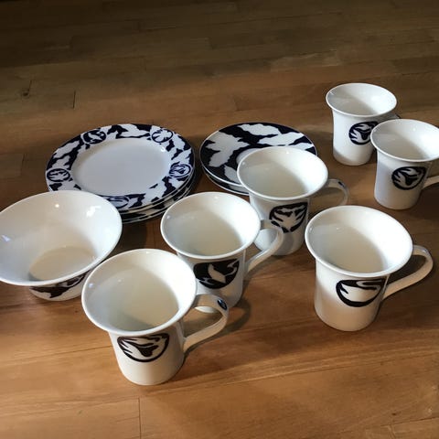 Kaffekrus 10.3 x 10 cm Lin Utzon Rosendahl Hans Christian Andersen, 2 stk Den lille Havfrue, 2 stk Den grimme Ælling, pris pr stk kr. 150,-. Samlet pris kr. 500,-.