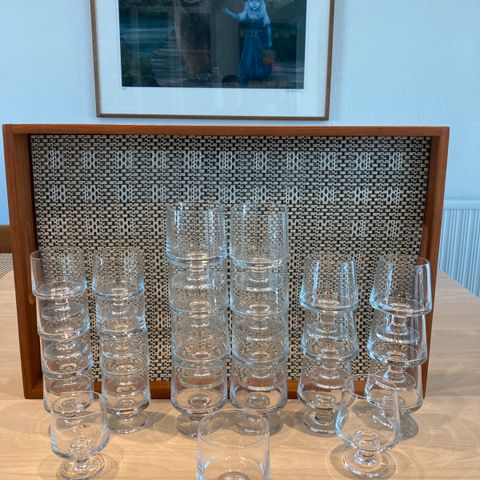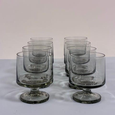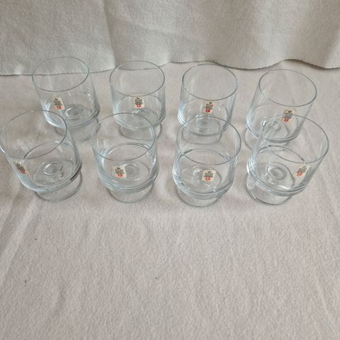 8 glas sælges samlet, næsten ubrugte og stadig med markart på – ingen skår, ridser eller glaspest.