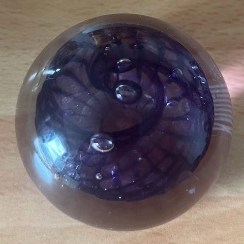 Fin lille Bülow brev presser med lilla mønster, den er i fin stand, den er 6 cm i diameter.