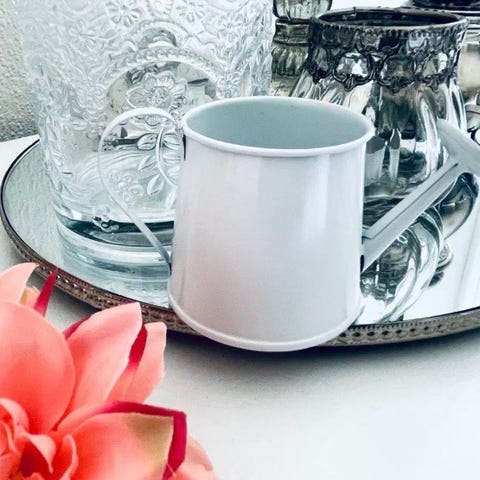 Skøn autentisk mini vandkande i zink med udsmykning og bemalet zink