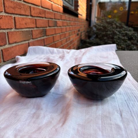 2 Smukke gule fyrfadsskåle Atoll design Anna Elmer fra Kosta Boda.