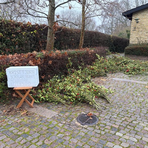 Ca 1,6-1,7 meter høj plante Kristtorn kan afhentes gratis. Den er klippet op, så den har fire stammer og en krone for oven. Den er forholdsvis tæt. Den gror hurtigt. Den er cirka 1,3 til 1,6 i diameter. Den skal selv graves op og transporteres ud. Den passer ikke lige ind i vores have.