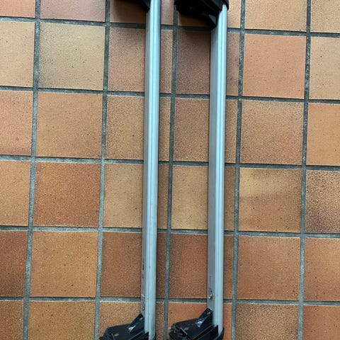 I fin stand med en nøgle. Afstanden mellem clips er ca 93-94 cm målt på bøjlen. Kan vist også bruges til andre bil modeller med samme tag.