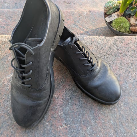 Snøresko i læder. Brugt en eller to gange, men de er desværre for smalle til mig. Som nye.