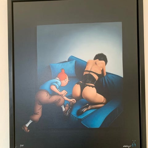 Ole Ahlberg, olie på lærred, olie maleri fra Hergé universet (Tintin, Tin Tin) købes.