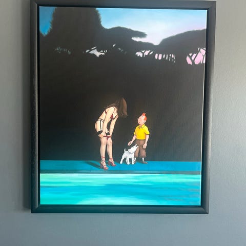 Ole Ahlberg, olie på lærred, olie maleri fra Hergé universet (Tintin, Tin Tin...
