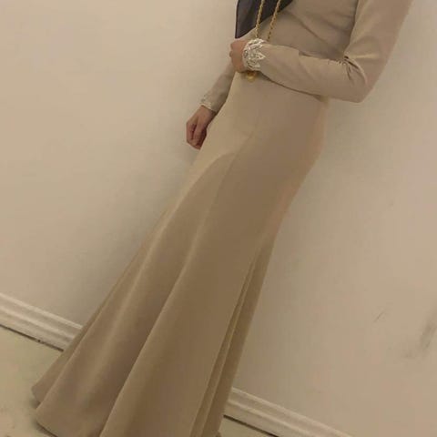 Virkelig fin til galla, bryllup og andre fester med havfrue silhuetten, sweetheart neckline og slids bag på, så er til at gå i.