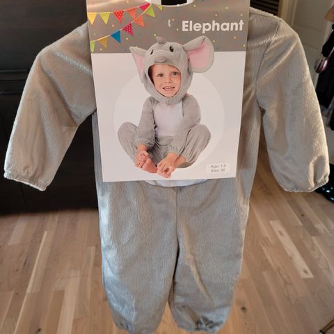 Udklædningstøj Elefant hue, meget fin og blød elefanthue med velcro-lukning under hagen. Størrelsen er One-size. Jeg vil mene, at den kan passe fra ca. 4-5 år og opad - blev købt til en voksen. Til halloween, fastelavn mv. Ann. nr. L193