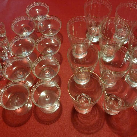 Glas, VINGLAS, 5 stk., Kongeå-Lyngby,som nye vinglas Lyngby- Kastrup krystal glas. med guldkanter. H. 18 CM. D. 7 CM. sælges samlet- 250 kr+ porto.