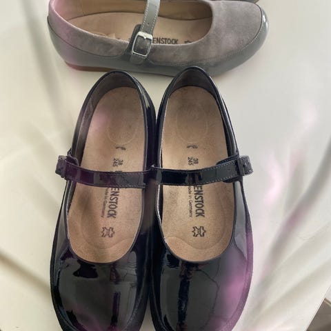 Helt nye Birkenstock ballerinaer med rem i skind både udvendig og indvendig og med Birkenstocks gode komfortsåler