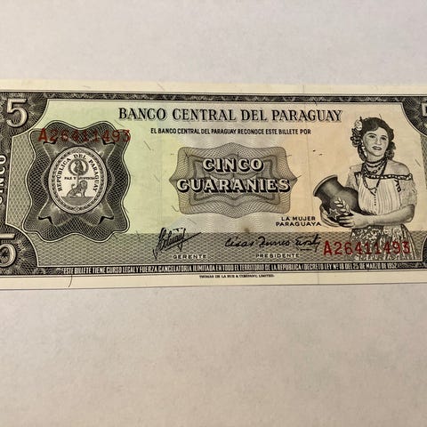 Flot og helt ubrugt 1 Guarani seddel fra Paraguay sælges.