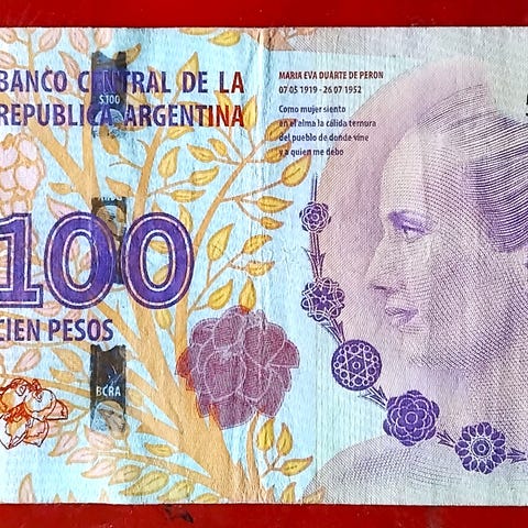 stammer fra perioden omkring 1973–1981. Den viser portrættet af General José de San Martín, en nationalhelt i Argentina, og bygningen på bagsiden er Casa de Gobierno de Mendoza.