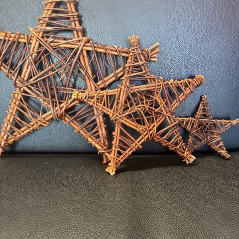 stjerner, til pynt, indpakning eller hvad man nu vil bruge dem til. Har tidligere også brugt lignende til at sætte på hat som pynt. Flere størrelser. 1 stk. 8 kr. , 5 stk. 25. Vælg selv.
