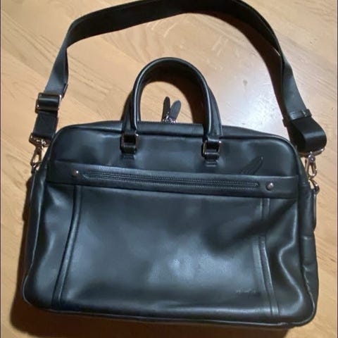 imiteret læder, sort, mappe, stilren lædertaske af PU- læder, perfekt til PC op til 16", smart opbevaring af f.eks dokumenter, mobil, pung og høretelefoner, udover to større lommer indeni tasken, er der også smart opbevaring til alt det, du har brug for i løbet af arbejdsdagen. , slidstærk Pu- læder, stof indeni, elegant og flot design, 3 lynlåsrum, hanke og skulderrem. MEGET FLOT STAND,HELT INTAKT, INGEN SLID ELLER RIDSER. Sender gerne, dog ikke med fiks færdig, porto oveni