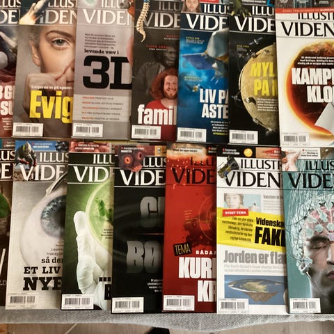 Kan kun afhentes i Brønderslev i Nordjylland. Kan ikke sendes. Illustreret videnskab 5 kr pr. Stk. Minimum salg pr gang er en hel årgang. OBS: Årgang 24,23,22,21,20,19,18,17 og 16 er solgt. Pris for køb af alle årgange er 400 kr