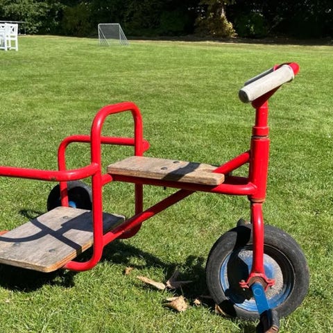 Retro trehjulet cykel fra børneinstitution udviklet til at kunne tåle det hårde liv på en legeplads.