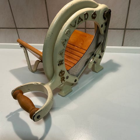 Fin Raadvad gammeldags brød maskine i gult .